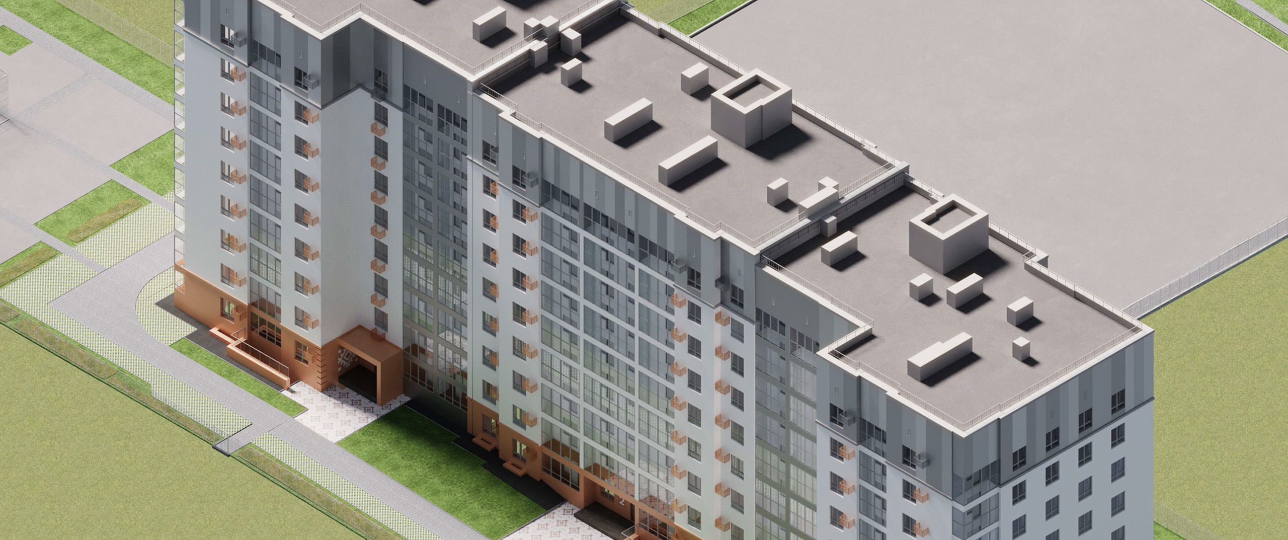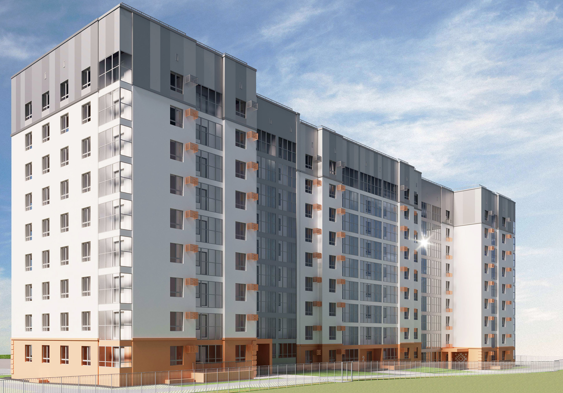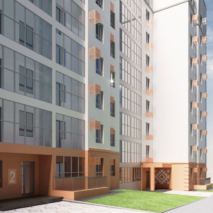ЖК "Розмарин" состоит из 255 квартир, 1 этаж занимают нежилые помещения, все подъезды оснащены колясочными.